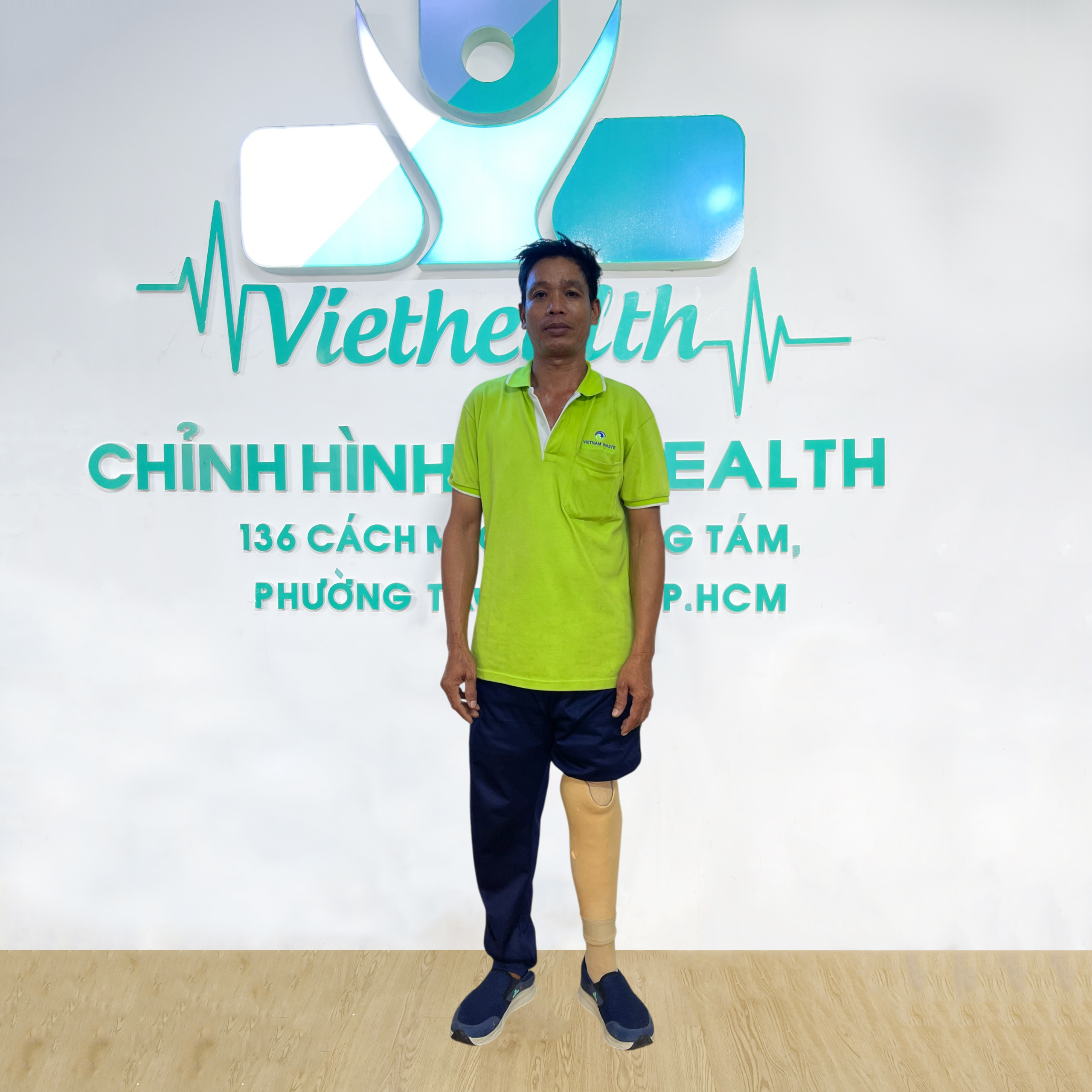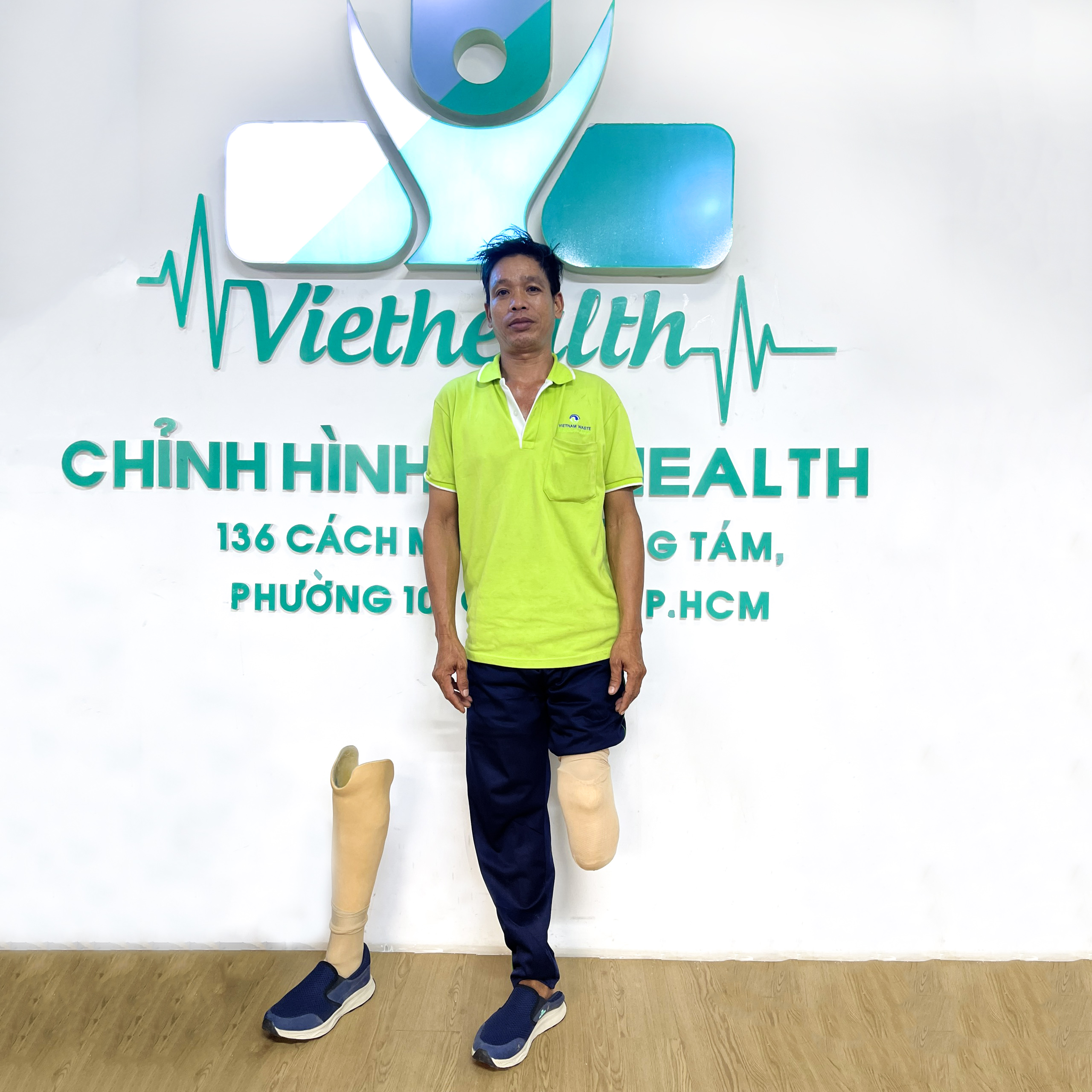 Hình ảnh khách hàng sử dụng chân giả dưới gối của Viethealth: